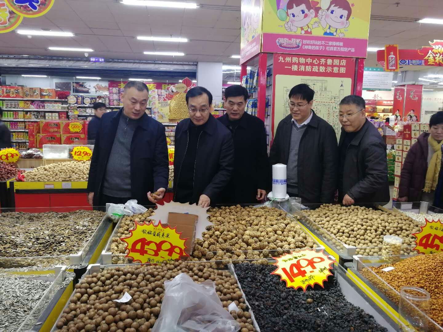 2月14日上午,市商務(wù)局局長吳昌力、副調(diào)研員李玉海帶隊,到九州購物中心齊魯園店視察節(jié)日物資供應(yīng)情況,并進(jìn)行了現(xiàn)場指導(dǎo),集團(tuán)董事長兼總經(jīng)理楊永東陪同。 吳昌力一行重點(diǎn)查看了酒水、調(diào)味品、干果等節(jié)日商品的供應(yīng)情況,詳細(xì)了解了米、面、油、菜等民生商品的備貨情況,并對重要產(chǎn)品追溯系統(tǒng)的運(yùn)行情況進(jìn)行了檢查。吳昌力對購物中心齊魯園店在應(yīng)對節(jié)日期間市場需求方面所做的各項工作給予了充分肯定。(九州購物中心齊魯園店 梁兵)