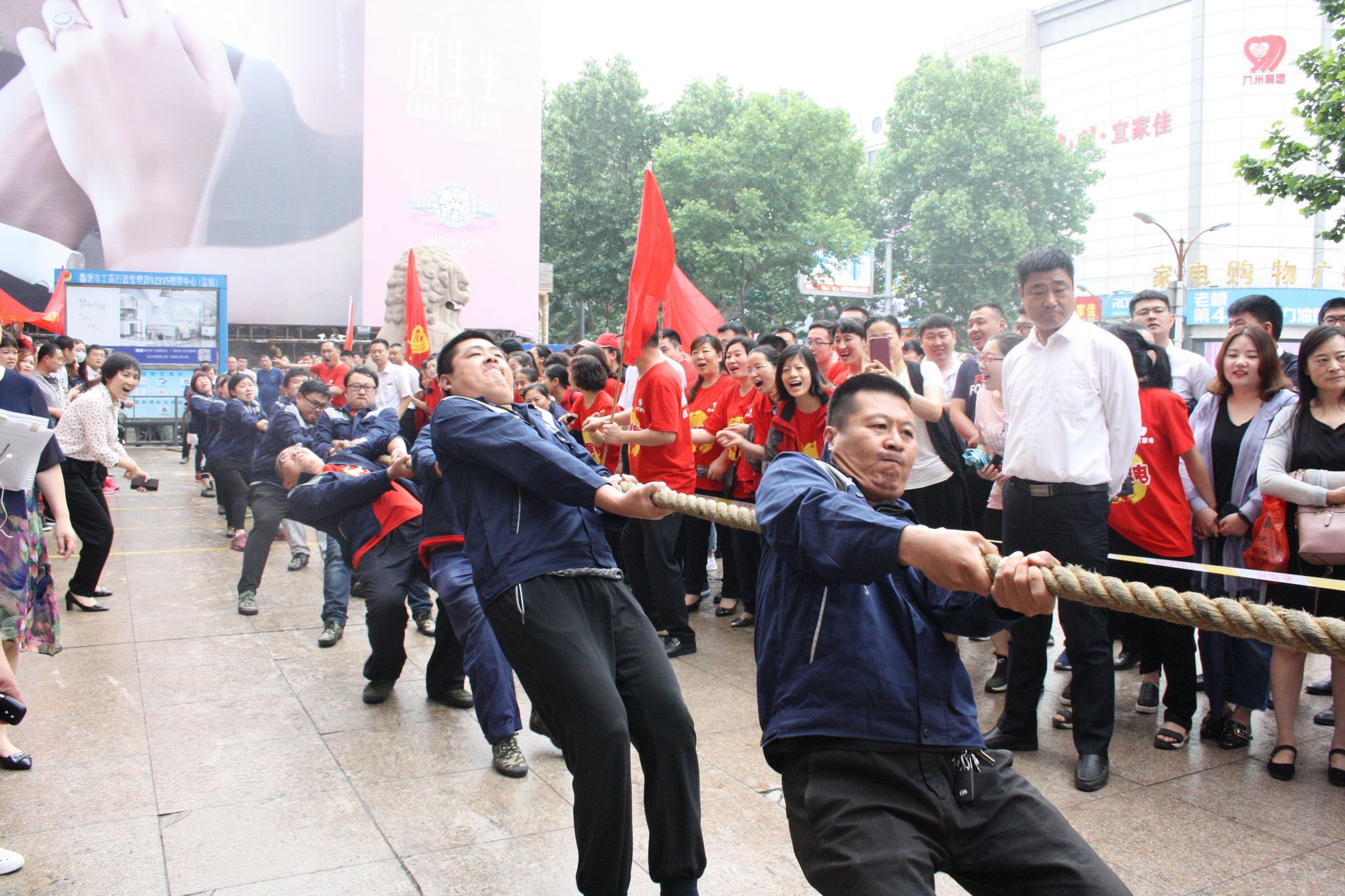 5月17日上午七點(diǎn),九州集團(tuán)2018年運(yùn)動(dòng)會(huì)拔河比賽項(xiàng)目伴著激昂的音樂(lè)在九州大廈解放路店廣場(chǎng)拉開帷幕。來(lái)自各單位和集團(tuán)行政的六支代表隊(duì)共計(jì) 108人參加比賽。 來(lái)自各單位和集團(tuán)行政的六支代表隊(duì),已經(jīng)準(zhǔn)備就緒,蓄勢(shì)待發(fā)。一聲哨響,兩隊(duì)展開激烈的爭(zhēng)奪,加油聲、鼓勁聲、歡呼聲此起彼伏,你爭(zhēng)我奪,你上我下,一片昂揚(yáng)氣氛。這是一場(chǎng)勢(shì)均力敵的較量,兩隊(duì)的比賽已經(jīng)進(jìn)入膠著狀態(tài),緊張激烈的現(xiàn)場(chǎng)氣氛將整個(gè)比賽推向了高潮;這是一場(chǎng)實(shí)力懸殊的戰(zhàn)斗,在不甘示弱的團(tuán)隊(duì)爭(zhēng)奪中,永不放棄,勢(shì)要賽出團(tuán)隊(duì)的風(fēng)采和精神。經(jīng)過(guò)激烈的角逐,來(lái)自臨沂賓館的代表隊(duì)眾望所歸奪得桂冠,九州大廈代表隊(duì)、汽貿(mào)公司代表隊(duì)分獲二、三名,九州宜家佳代表隊(duì)、超市公司代表隊(duì)、集團(tuán)行政代表隊(duì)分獲四至六名。 拔河比賽是九州集團(tuán)運(yùn)動(dòng)會(huì)上延續(xù)多年的比賽項(xiàng)目,一年又一年的榮譽(yù)爭(zhēng)奪,承載著九州人團(tuán)結(jié)一心、頑強(qiáng)拼搏的信念堅(jiān)持;展現(xiàn)著九州人昂揚(yáng)向上、積極進(jìn)取的精神風(fēng)貌。(集團(tuán)辦公室 劉傳芳)