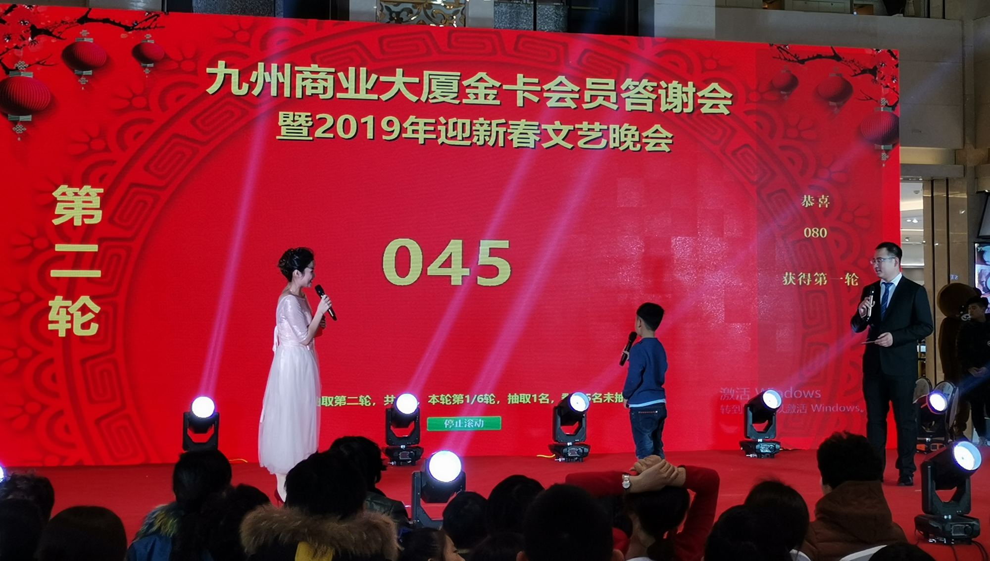 飛歌雅頌贊華年,異彩流光唱新春。1月17日晚,九州商業(yè)大廈金卡會員答謝會暨2019年迎新春文藝晚會在一樓中庭隆重舉行。受邀金卡會員代表、大廈領(lǐng)導(dǎo)和部分職工及現(xiàn)場顧客觀看了此次晚會。 晚會由大廈及演藝公司精心準備的11個節(jié)目組成,形式多樣,內(nèi)容精彩,為受邀的金卡會員及現(xiàn)場顧客展示了九州人朝氣蓬勃、奮發(fā)向上的精神風(fēng)貌。晚會在女子樂坊曲藝表演中拉開序幕,歌曲《春天的芭蕾》《我只在乎你》以優(yōu)美的旋律征服著現(xiàn)場觀眾的耳朵;雜技《男女力量》用力量的展示贏得了現(xiàn)場觀眾的陣陣掌聲;川劇《變臉》更是讓人匪夷所思,一張臉剎那間就可以千變?nèi)f化;薩克斯獨奏《回家》《今日痛飲慶功酒》彰顯了樂器的魅力;舞蹈《中國脊梁》、《風(fēng)箏誤》《共圓中國夢》《絨花》更是給現(xiàn)場觀眾帶來了一場場優(yōu)美的視覺盛宴。經(jīng)過近兩小時的精彩演出,晚會在節(jié)奏感十足的快板舞《九州贊》中落下帷幕。 整場晚會熱烈、喜慶、充滿正能量,不僅有精彩絕倫的文藝演出,還穿插了現(xiàn)場互動抽獎環(huán)節(jié),令受邀的金卡會員朋友高興而來,滿意而歸。(九州大廈 戚斌)