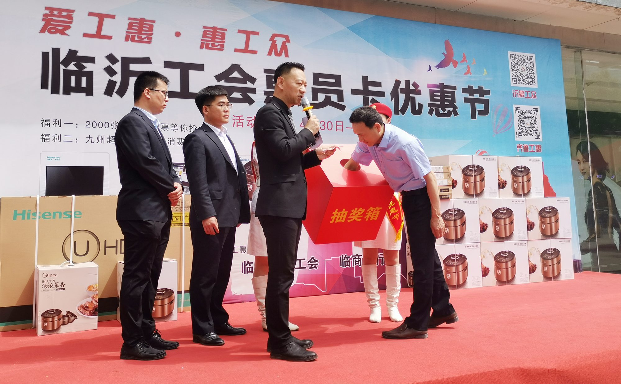 5月4日上午,“愛(ài)工惠•惠工眾——臨沂工會(huì)惠員卡優(yōu)惠節(jié)”抽獎(jiǎng)活動(dòng)在九州商業(yè)大廈門(mén)前廣場(chǎng)舉行。集團(tuán)及九州商業(yè)大廈領(lǐng)導(dǎo)劉延?xùn)|、徐凱、龐建湘出席活動(dòng),九州商業(yè)大廈、臨商銀行部分職工參加活動(dòng)。 此次抽獎(jiǎng)活動(dòng)由沂蒙公證處全程進(jìn)行公證監(jiān)督,共抽出一等獎(jiǎng)1名、二等獎(jiǎng)5名、三等獎(jiǎng)30名;顒(dòng)現(xiàn)場(chǎng)還設(shè)置了有獎(jiǎng)問(wèn)答環(huán)節(jié),主持人通過(guò)現(xiàn)場(chǎng)提問(wèn)的方式與職工們進(jìn)行互動(dòng),并對(duì)回答正確者送出紀(jì)念禮品。 此次抽獎(jiǎng)活動(dòng)讓廣大持卡職工切身感受到惠員卡帶來(lái)的實(shí)惠和便利,進(jìn)一步提高了工會(huì)惠員卡的使用率。截止至下午3:00,獎(jiǎng)品如數(shù)送出,令獲獎(jiǎng)職工高興而來(lái),滿意而歸。(文圖/戚斌)