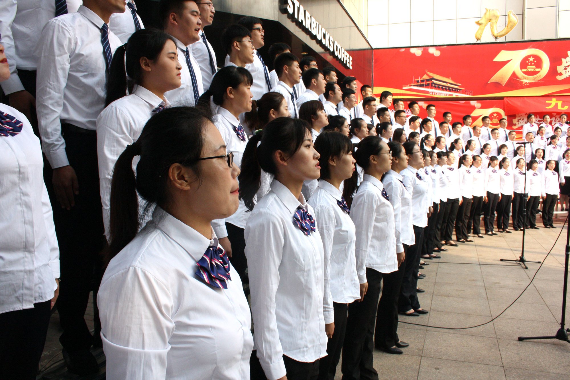躬逢新時(shí)代,頌歌獻(xiàn)祖國(guó)。9月30日早上,集團(tuán)在九州商業(yè)大廈門前廣場(chǎng)舉辦慶祝新中國(guó)成立70周年歌詠比賽,來(lái)自各經(jīng)營(yíng)單位和集團(tuán)行政處室的六支代表隊(duì)共計(jì)450余人參加了比賽。 余音繞梁,群情激昂,或雄壯,或深情,或火熱,或沉醉,六支代表隊(duì)用動(dòng)聽的歌聲直抒對(duì)祖國(guó)的滿腔熱愛,展現(xiàn)新時(shí)代九州人深厚的愛國(guó)情懷。“起來(lái),不愿做奴隸的人們,把我們的血肉筑成我們新的長(zhǎng)城……”比賽伊始,舉行升國(guó)旗儀式,伴隨著緩緩升起的五星紅旗,六支代表隊(duì)齊唱國(guó)歌,斗志昂揚(yáng)。隨后,全體大合唱《九州集團(tuán)之歌》更加彰顯了九州員工蓬勃向上、意氣風(fēng)發(fā)的精神風(fēng)貌。本次比賽,每支代表隊(duì)演唱兩首參賽曲目,以歌詠志、以歌抒懷!蹲鎳(guó)頌》《我和我的祖國(guó)》《保衛(wèi)黃河》《大中國(guó)》《沒有共產(chǎn)黨就沒有新中國(guó)》《歌唱祖國(guó)》《不忘初心》《我愛你中國(guó)》《祖國(guó)不會(huì)忘記》《愛我中華》等一首首膾炙人口的歌曲陸續(xù)唱響,唱出了九州人對(duì)祖國(guó)母親的無(wú)限熱愛和美好祝福。嘹亮的歌聲在現(xiàn)場(chǎng)久久回蕩,吸引了越來(lái)越多的行人駐足觀看,現(xiàn)場(chǎng)響起一陣又一陣的掌聲。比賽的最后,所有參賽隊(duì)員及現(xiàn)場(chǎng)觀眾在指揮老師的統(tǒng)一指揮下,共同唱響《歌唱祖國(guó)》,“五星紅旗迎風(fēng)飄揚(yáng),勝利歌聲多么嘹亮,歌唱我們親愛的祖國(guó),從今走向繁榮富強(qiáng)……”熟悉的旋律伴隨著飄揚(yáng)的五星紅旗,將現(xiàn)場(chǎng)的氣氛推向高潮,本次比賽圓滿落下帷幕。 同唱愛國(guó)歌,共筑九州夢(mèng)。當(dāng)下,九州人將青春與熱血融入旋律,將情懷與夢(mèng)想融入歌聲,獻(xiàn)禮祖國(guó)。而今后,九州人將繼續(xù)緊隨偉大祖國(guó)發(fā)展步伐,不忘初心,砥礪奮進(jìn),再創(chuàng)事業(yè)新輝煌。(文/劉文靜)