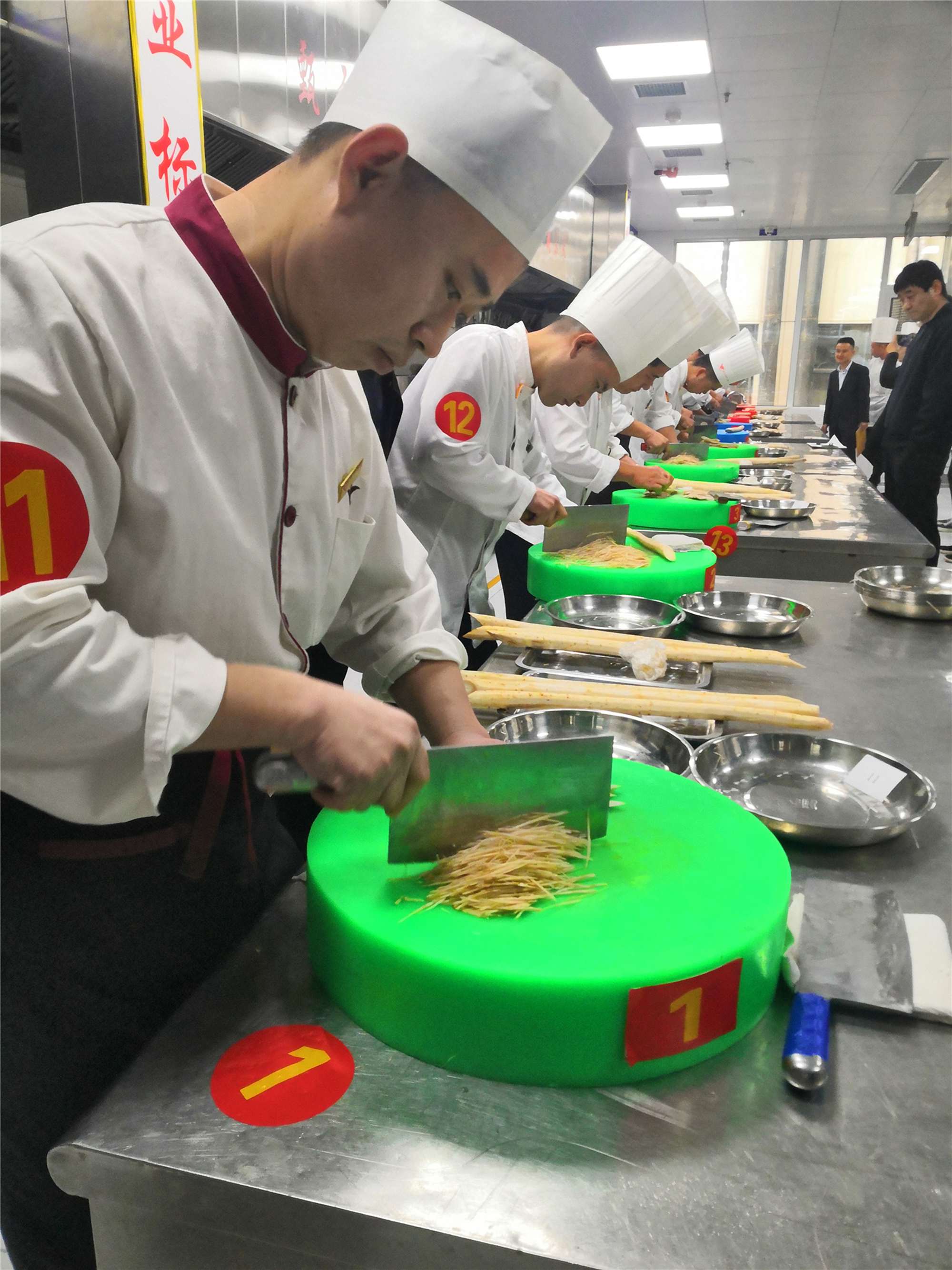 11月21日下午,臨沂賓館2019年刀工技術(shù)比賽在沂蒙路店九州美食園三樓廚房舉行,比賽評(píng)委由賓館班子成員及各店廚房部負(fù)責(zé)人擔(dān)任。比賽內(nèi)容為在規(guī)定時(shí)間內(nèi)將2.1斤去皮牛蒡切配為不少于2斤的粗細(xì)1毫米見方的牛蒡絲。前期,各分店充分發(fā)動(dòng),精心組織,廚房部全體員工踴躍參與,不斷操練,最終選拔出20名選手參加本次刀工比賽。 隨著“比賽開始”一聲令下,一場(chǎng)來(lái)自刀尖上的視覺盛宴正式上演,各位選手全神貫注,不甘落后,從切片到成絲,每一步都盡展精湛刀工技藝。切配完成后進(jìn)行統(tǒng)一稱重、泡水,進(jìn)行最終評(píng)定。評(píng)委們將成品劃分等級(jí)后按照打分表對(duì)每個(gè)成品進(jìn)行打分。經(jīng)過(guò)激烈的角逐,最終沂蒙路店九州美食園馬洪富獲得一等獎(jiǎng),開發(fā)區(qū)店張慶龍、沂蒙路店貴賓樓徐從茂獲得二等獎(jiǎng),開發(fā)區(qū)店史建財(cái)、大學(xué)酒店張立偉、開發(fā)區(qū)店史建春、開發(fā)區(qū)店韓廣利獲得三等獎(jiǎng)。(文/錢小杰 圖/王慧)