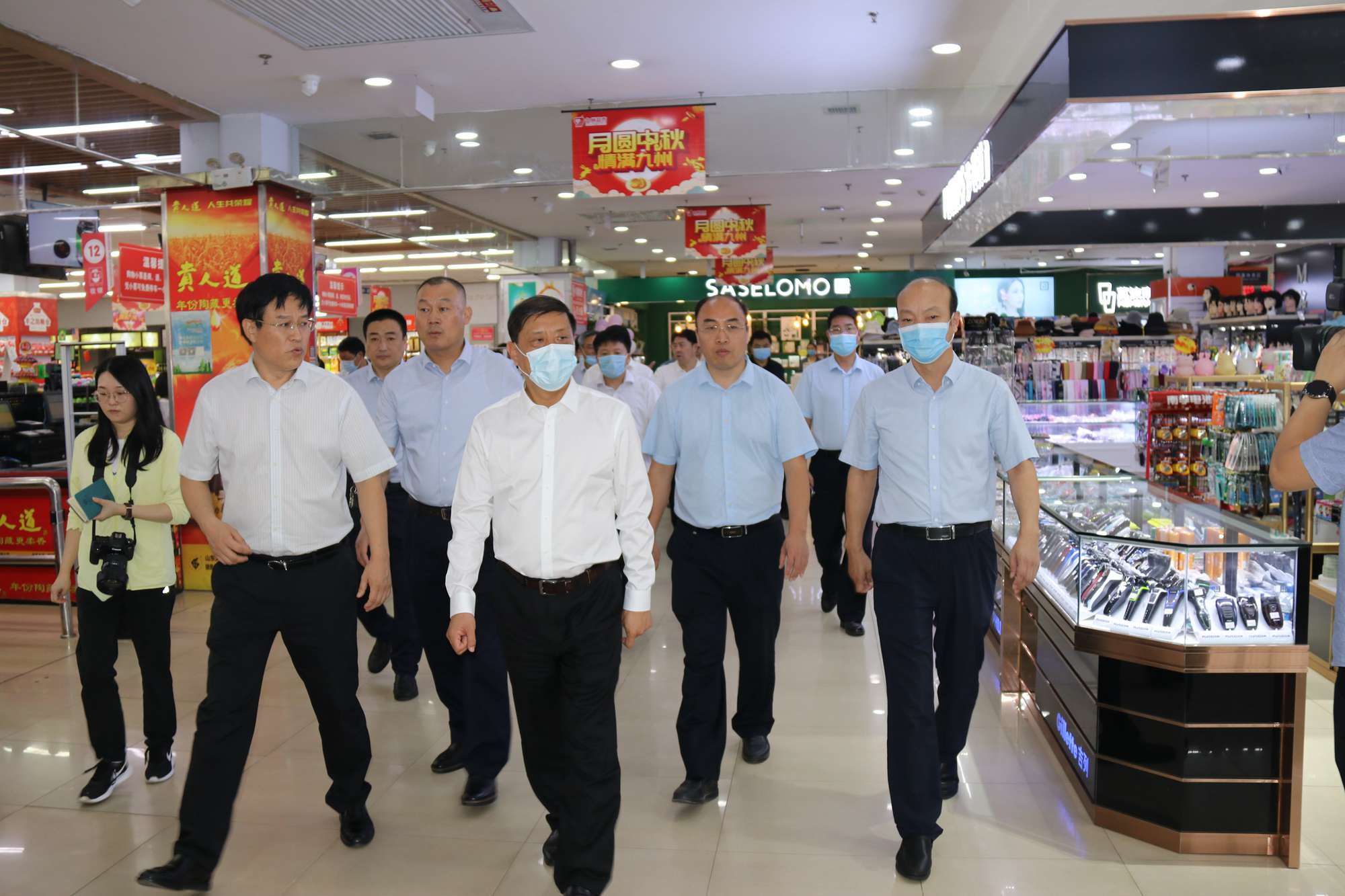 9月29日上午,臨沂市委書記王安德到九州購物中心齊魯園店檢查節(jié)日食品安全工作。副市長(zhǎng)劉賢軍,市商務(wù)局黨組書記、局長(zhǎng)張洪永,市市場(chǎng)監(jiān)督管理局黨組書記、局長(zhǎng)黃杰陪同。集團(tuán)董事長(zhǎng)、總經(jīng)理?xiàng)钣罇|,超市公司總經(jīng)理李國等參加活動(dòng)并匯報(bào)工作。