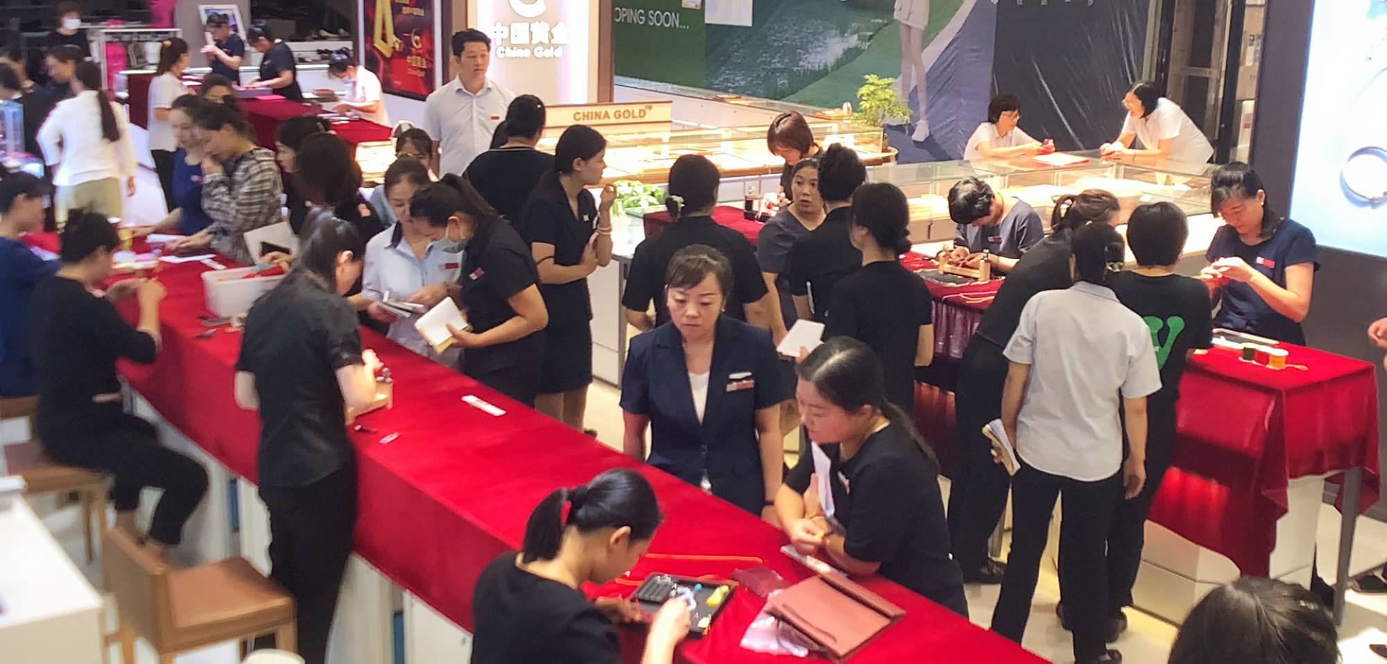 7月31日上午,九州商業(yè)大廈解放路店一樓商場(chǎng)黃金區(qū)以即將到來(lái)的“七夕節(jié)”為契機(jī)開(kāi)展了以婚慶為主題的手工創(chuàng)意花樣編織技能比賽,共有13名員工參加。
