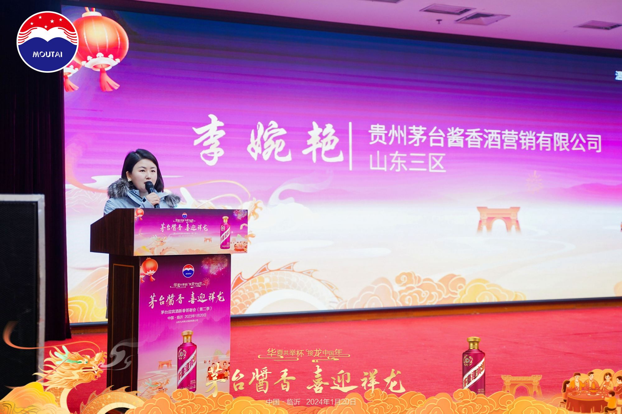 答謝會現(xiàn)場布置精美絕倫,洋溢著新年的喜悅氛圍,營造出了“互動體驗(yàn)+文化賦能+情感交流”的場景;精彩紛呈的節(jié)目表演,帶領(lǐng)現(xiàn)場嘉賓零距離感受茅臺迎賓酒(紫)濃厚的待客文化。貴州茅臺醬香酒營銷有限公司山東三區(qū)臨沂地區(qū)負(fù)責(zé)人李婉艷在致辭中表示,茅臺迎賓酒(紫)是茅臺迎賓酒品質(zhì)和品牌再升級的經(jīng)典核心之作,其口感層次更加豐富,包裝更加精美。茅臺迎賓酒(紫)也是茅臺醬香系列酒中帶“茅臺字樣”的三款產(chǎn)品之一,具有標(biāo)志性和重要意義。超市公司副總經(jīng)理兼煙酒采購部經(jīng)理張峰在致辭中表示,茅臺迎賓酒(紫)擁有先天的迎賓系列市場優(yōu)勢,在醬香酒市場上有著強(qiáng)大的市場競爭力。它用紫氣東來的美好寓意,迎天下之友,意在“禮”、意在“迎”,為人們營造一種“座上客常滿”的祥和生活氛圍。