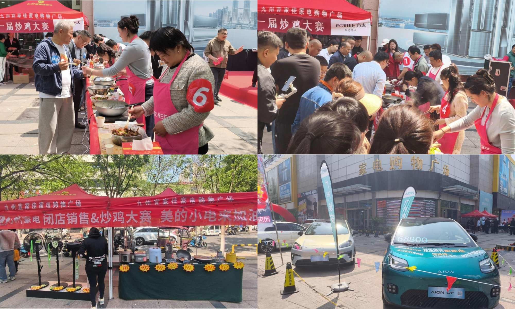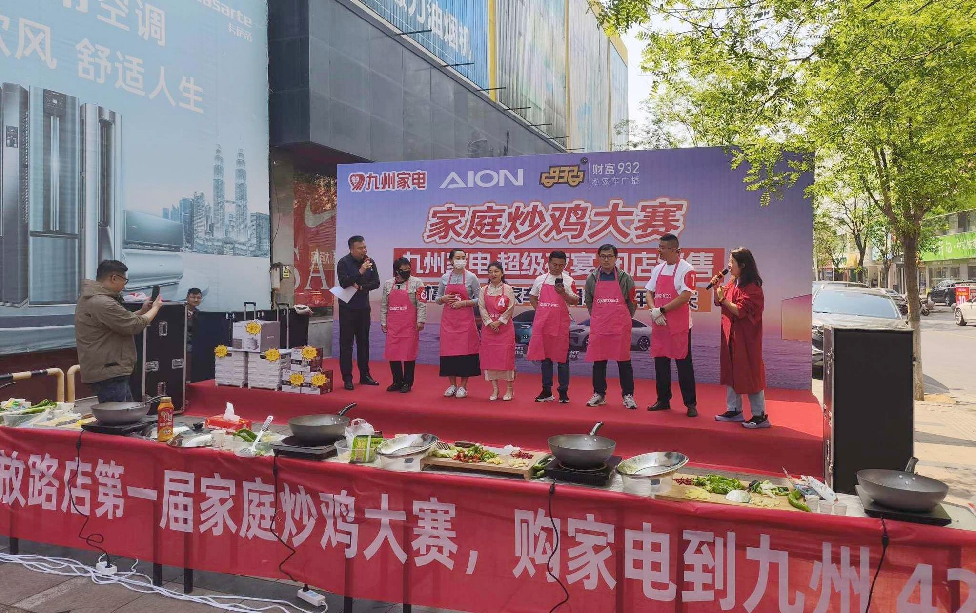 4月20日上午,九州家電聯(lián)合九州汽貿(mào)埃安汽車(chē)、財(cái)富932廣播電臺(tái)在解放路店門(mén)前舉辦了首屆家庭炒雞大賽。