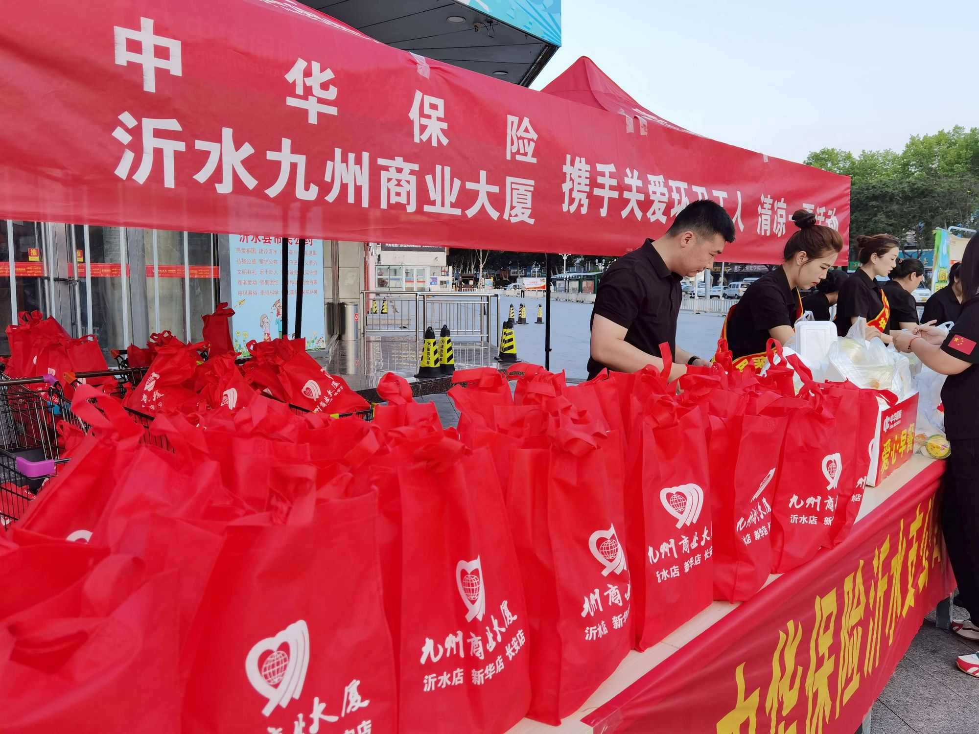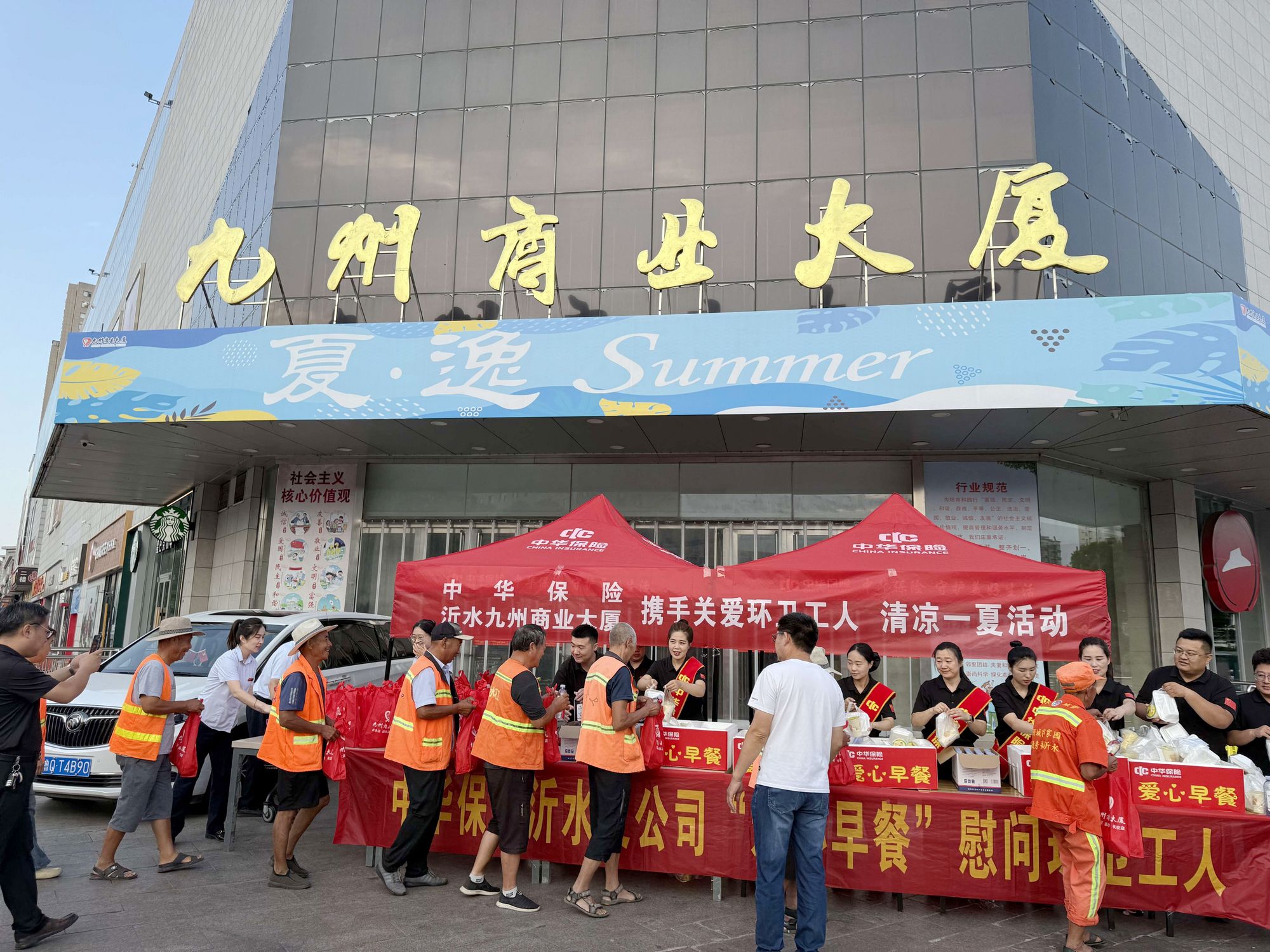 7月15日早上,九州商業(yè)大廈沂水門店攜手中華保險公司,在長安店門前廣場聯合開展了“攜手關愛環(huán)衛(wèi)工人 清涼一夏”公益活動,為150余名一線環(huán)衛(wèi)工人發(fā)放早餐與清涼禮包,在炎炎夏日為城市的“美容師”送去清涼與關懷。
