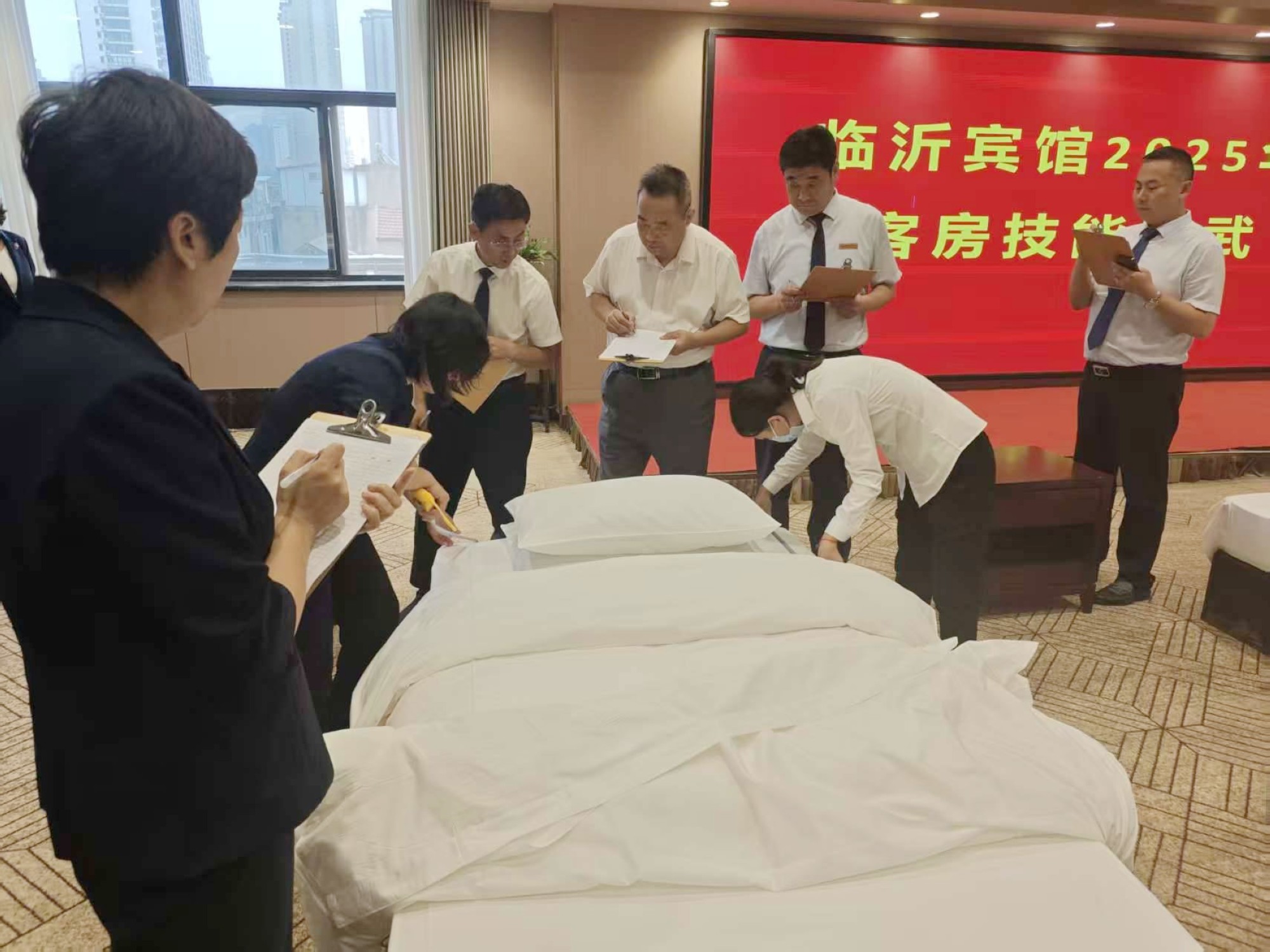 9月28日下午,臨沂賓館中式鋪床技能比武在沂蒙路店貴賓樓多功能廳舉行。本次技能比武分為中式鋪床、開夜床兩項,共有18名選手參加,以實操比拼展現(xiàn)服務(wù)專業(yè)素養(yǎng)。