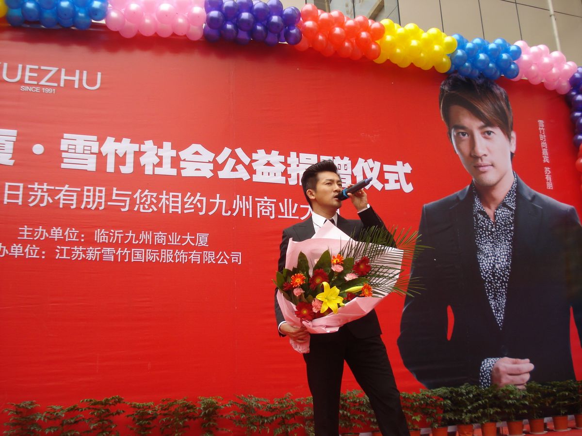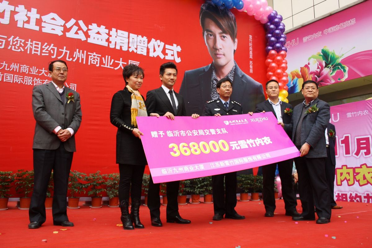 1113,九州商業(yè)大廈攜手江蘇新雪竹國際服飾有限公司共同舉辦了“雪竹2010風(fēng)尚中國”社會(huì)公益捐贈(zèng)儀式,向我市交警捐贈(zèng)了價(jià)值36.8萬元的雪竹內(nèi)衣。臺(tái)灣藝人、前小虎隊(duì)成員蘇有朋參加了捐贈(zèng)儀式。