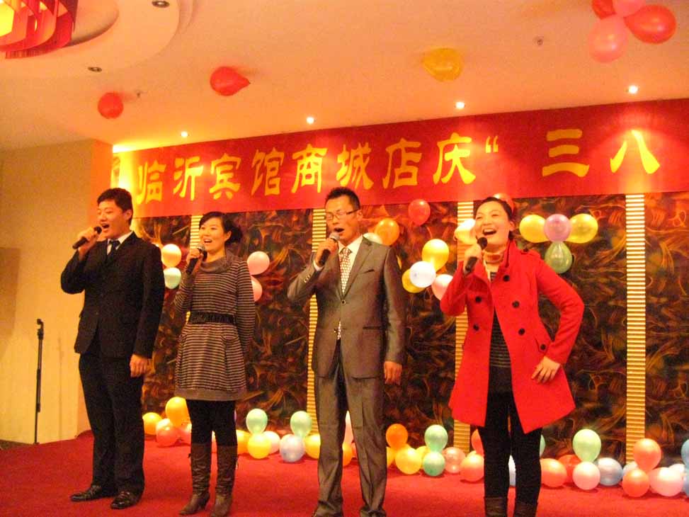 為活躍氣氛,豐富員工業(yè)余文化生活,在一年一度的三八婦女節(jié)來(lái)臨之際,商城店組織開(kāi)展了以“美麗節(jié)日 快樂(lè)共享”為主題的臨沂賓館商城店慶“三八”聯(lián)誼會(huì)。晚會(huì)上獨(dú)唱、對(duì)唱、串燒、街舞、互動(dòng)游戲等節(jié)目個(gè)個(gè)精彩;餐廳、廚房、客房、后勤員工分區(qū)打擂,互相喝彩、熱鬧非凡;小姑娘、小伙子、老大姐等同樂(lè)共享人人參與。用最真誠(chéng)的聲音,最精彩的節(jié)目,最熱烈的掌聲感謝母親、感恩九州,祝福明天。 歡樂(lè)和諧的晚會(huì)已落下了帷幕,而豐富多彩的商城店業(yè)余文化活動(dòng)正在拉開(kāi)序幕……