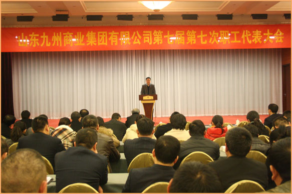 2月21日下午,山東九州商業(yè)集團(tuán)有限公司第七屆職工代表大會(huì)第七次會(huì)議在臨沂賓館召開(kāi),來(lái)自各單位的117名職工代表參加會(huì)議,工會(huì)主席石紹獻(xiàn)主持會(huì)議。集團(tuán)領(lǐng)導(dǎo)出席會(huì)議,集團(tuán)中層以上非職工代表列席會(huì)議。 會(huì)上,楊永東通報(bào)了集團(tuán)2012年度經(jīng)營(yíng)和費(fèi)用開(kāi)支情況;審議表決通過(guò)了《企業(yè)工資專(zhuān)項(xiàng)集體合同》;對(duì)申報(bào)“臨沂市勞動(dòng)關(guān)系和諧企業(yè)”形成了決議;審議表決通過(guò)了《集團(tuán)中層崗位競(jìng)爭(zhēng)上崗管理標(biāo)準(zhǔn)》、《集團(tuán)評(píng)先樹(shù)優(yōu)管理規(guī)定》和《集團(tuán)計(jì)劃生育管理標(biāo)準(zhǔn)》等三個(gè)管理制度。董事長(zhǎng)楊沂城在會(huì)上通報(bào)了集團(tuán)2012年基建投資情況,介紹了2013年投資計(jì)劃,并對(duì)經(jīng)營(yíng)管理工作和安全問(wèn)題作了強(qiáng)調(diào)。 會(huì)上,職工代表們以高度的使命感和主人翁精神,審議各項(xiàng)報(bào)告、方案、制度和標(biāo)準(zhǔn),積極行使自己參與公司民主決策、民主管理和民主監(jiān)督的權(quán)利。