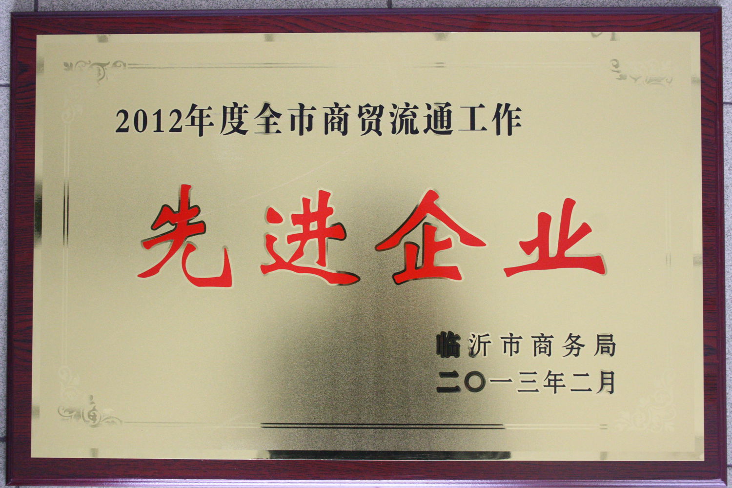 314日,全市商務(wù)工作會(huì)議召開(kāi),會(huì)上集團(tuán)被臨沂市商務(wù)局評(píng)為“2012年度全市商貿(mào)流通工作先進(jìn)企業(yè)”榮譽(yù)稱號(hào)。