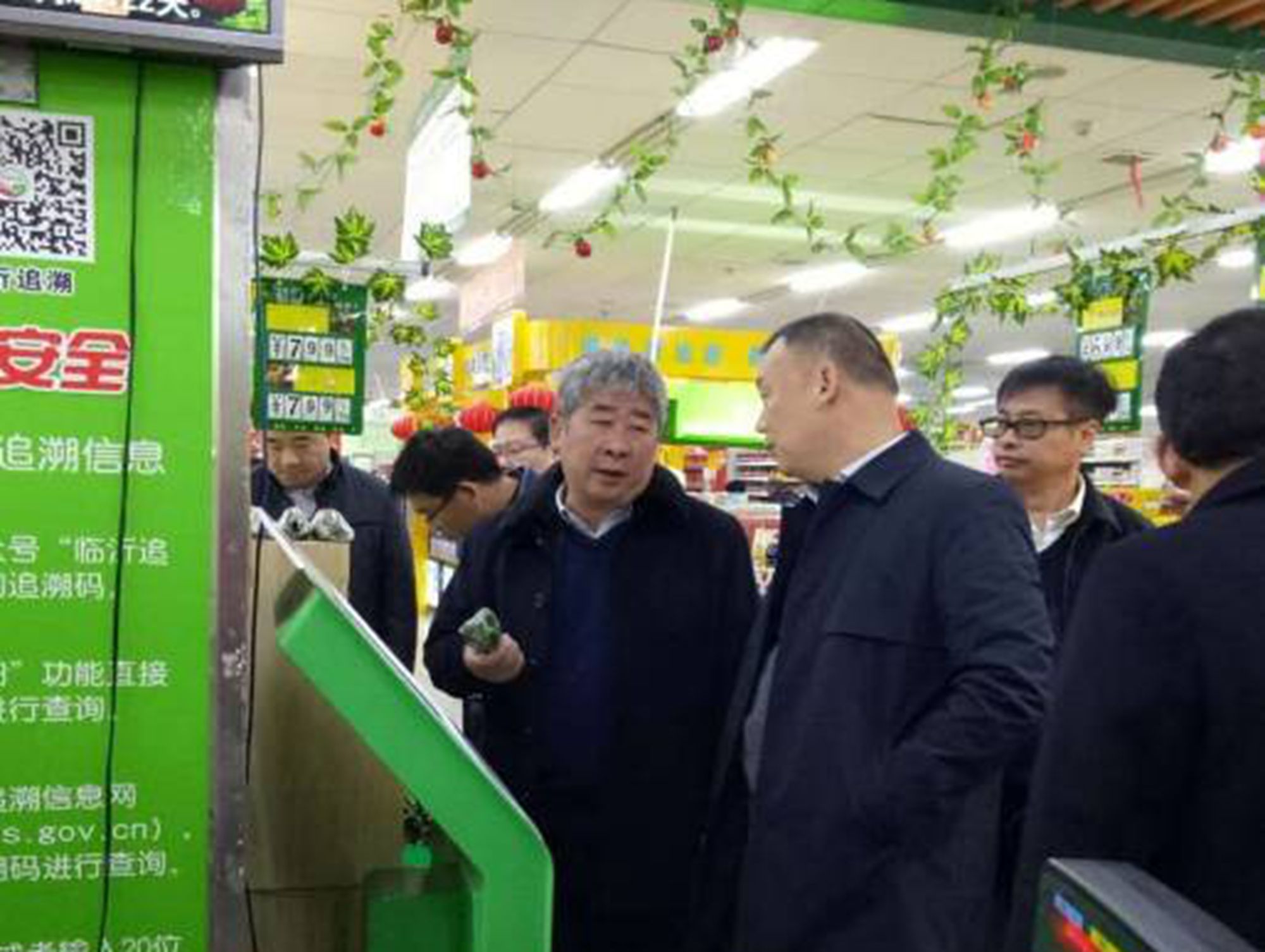 12月7日,東營市商務(wù)局副調(diào)研員周斌一行到購物中心齊魯園店參觀考察肉菜產(chǎn)品追溯體系建設(shè)情況。市商務(wù)局副調(diào)研員李玉海、市場秩序科科長劉志剛陪同。 考察組一行在購物中心齊魯園店先后參觀了果蔬區(qū)和畜產(chǎn)區(qū),在現(xiàn)場深入了解九州集團(tuán)肉菜追溯體系建設(shè)實施情況,并現(xiàn)場通過手機(jī)掃描二維碼,查詢商品來源?疾旖M一行對九州集團(tuán)在肉菜追溯體系建設(shè)方面做的大量工作給予了充分肯定。(購物中心齊魯園店 梁兵)